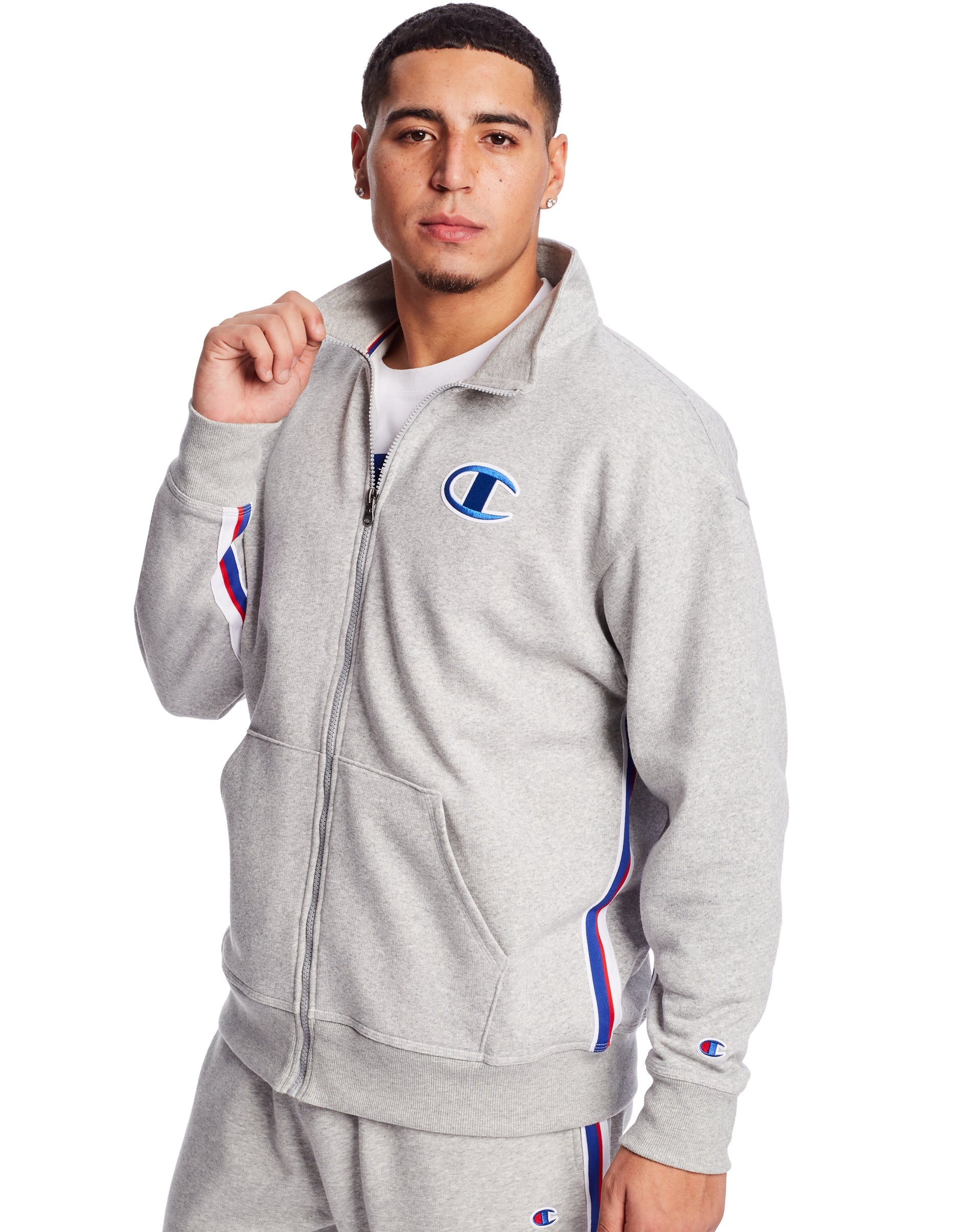 Champion Mens Powerblend Fleece Jacket With Taping, L, Black