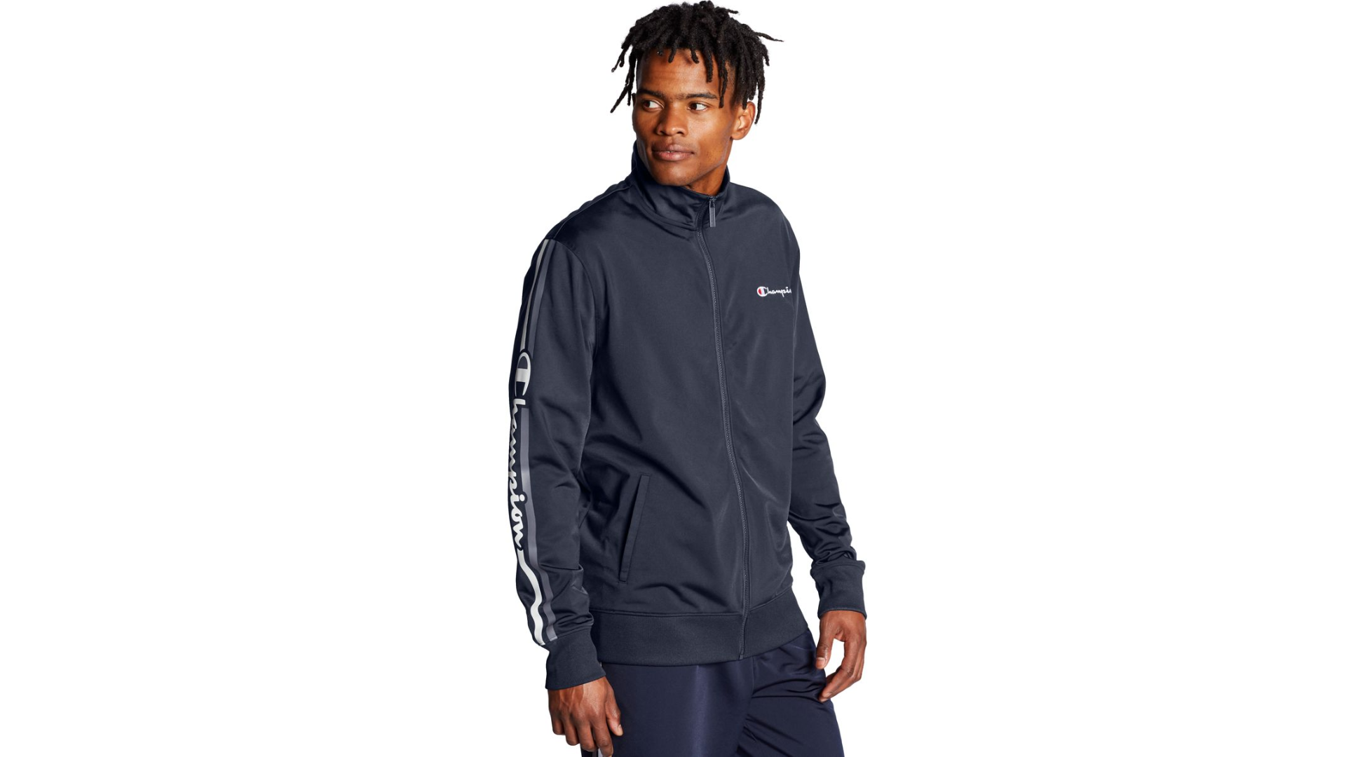 Athletic-inspired Track Jacket updated with our vertical logo is perfect for layering from gym to street.
