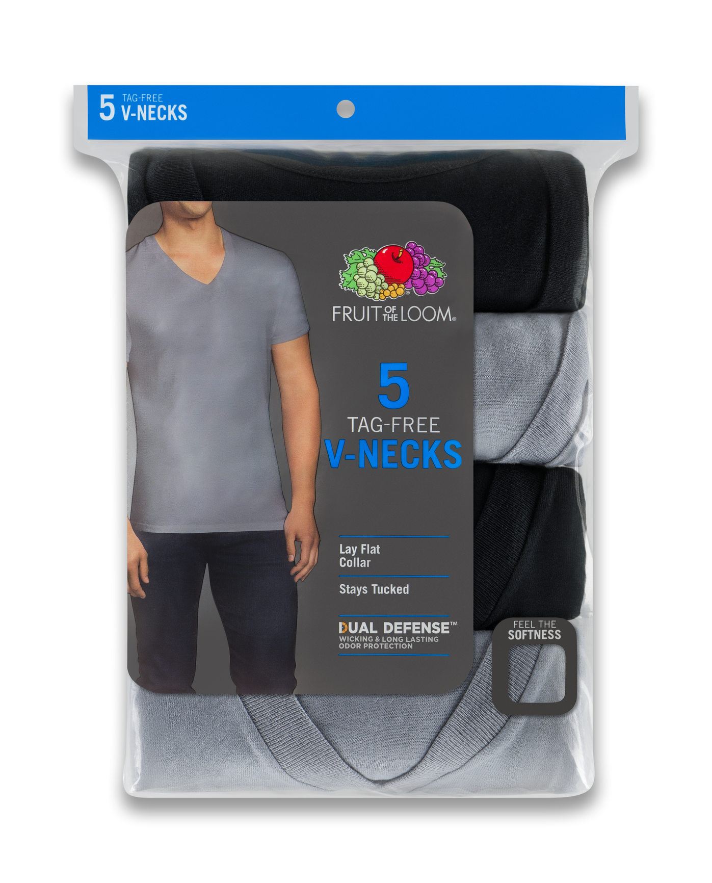• Four-pack tees each with V-neckline and short sleeves