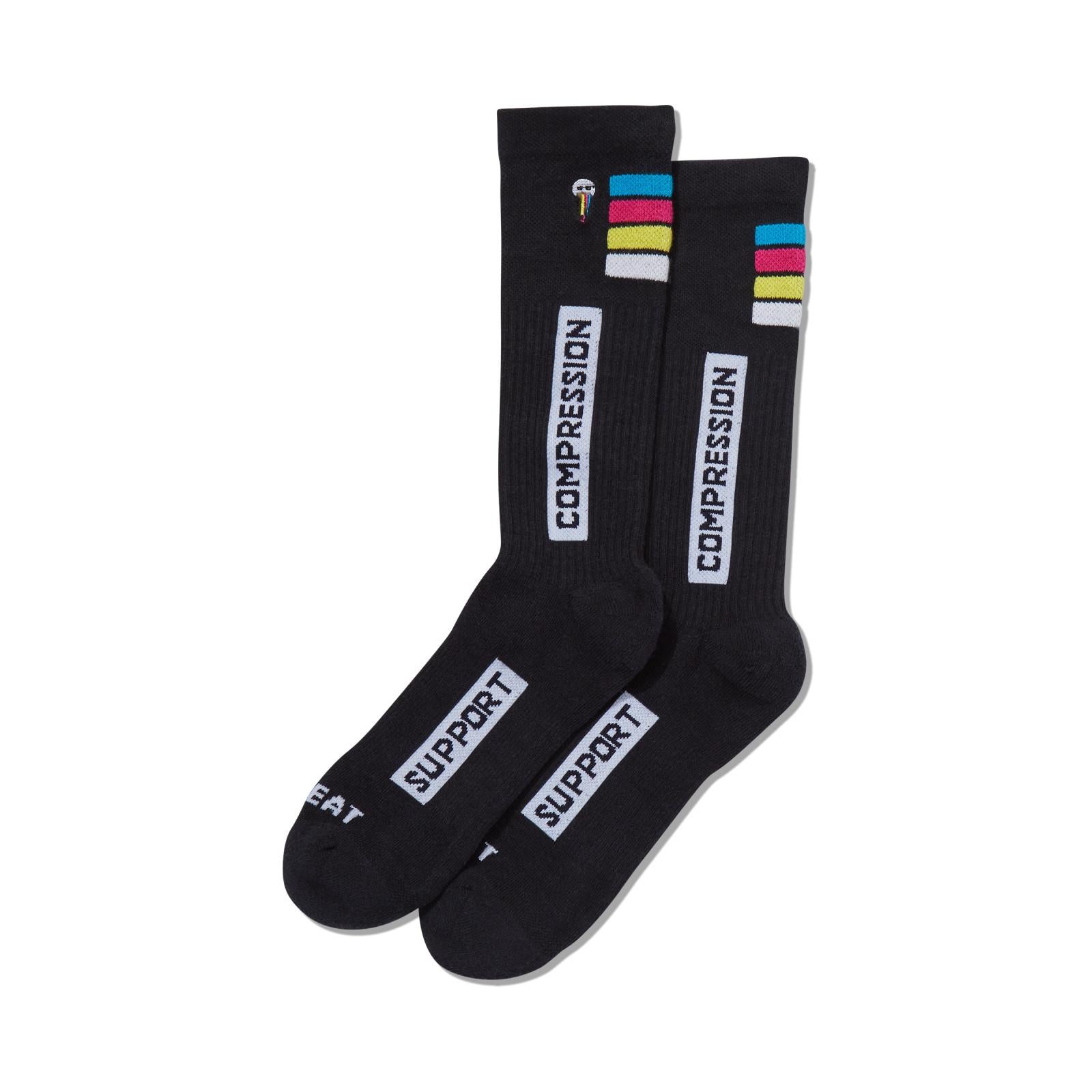 • These men’s compression socks provide comfort and energy with arch support, light compression, moisture management, cushioned sole, and finished with a seamless toe