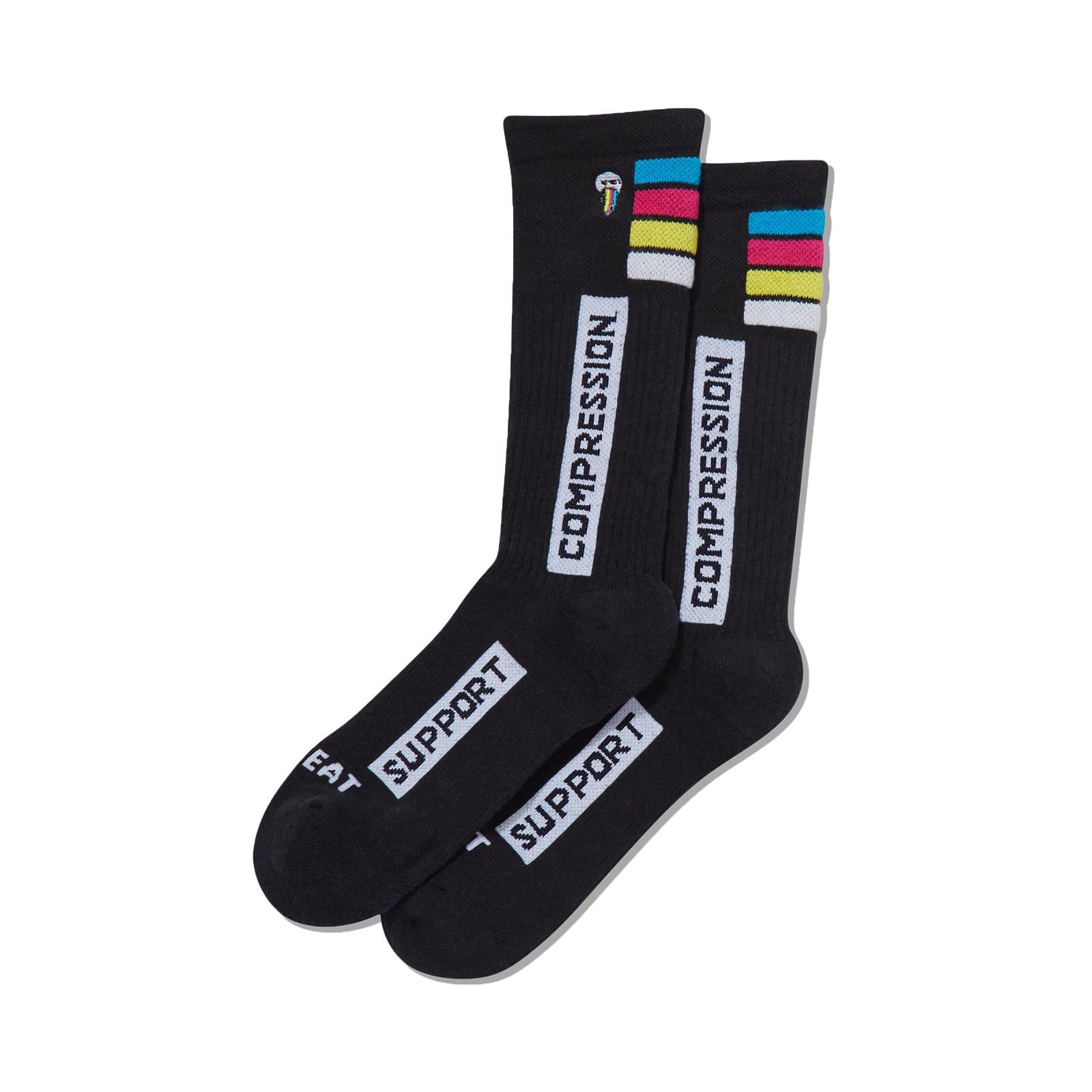 • Light compression, moisture management, cushioned sole, and finished with a seamless toe