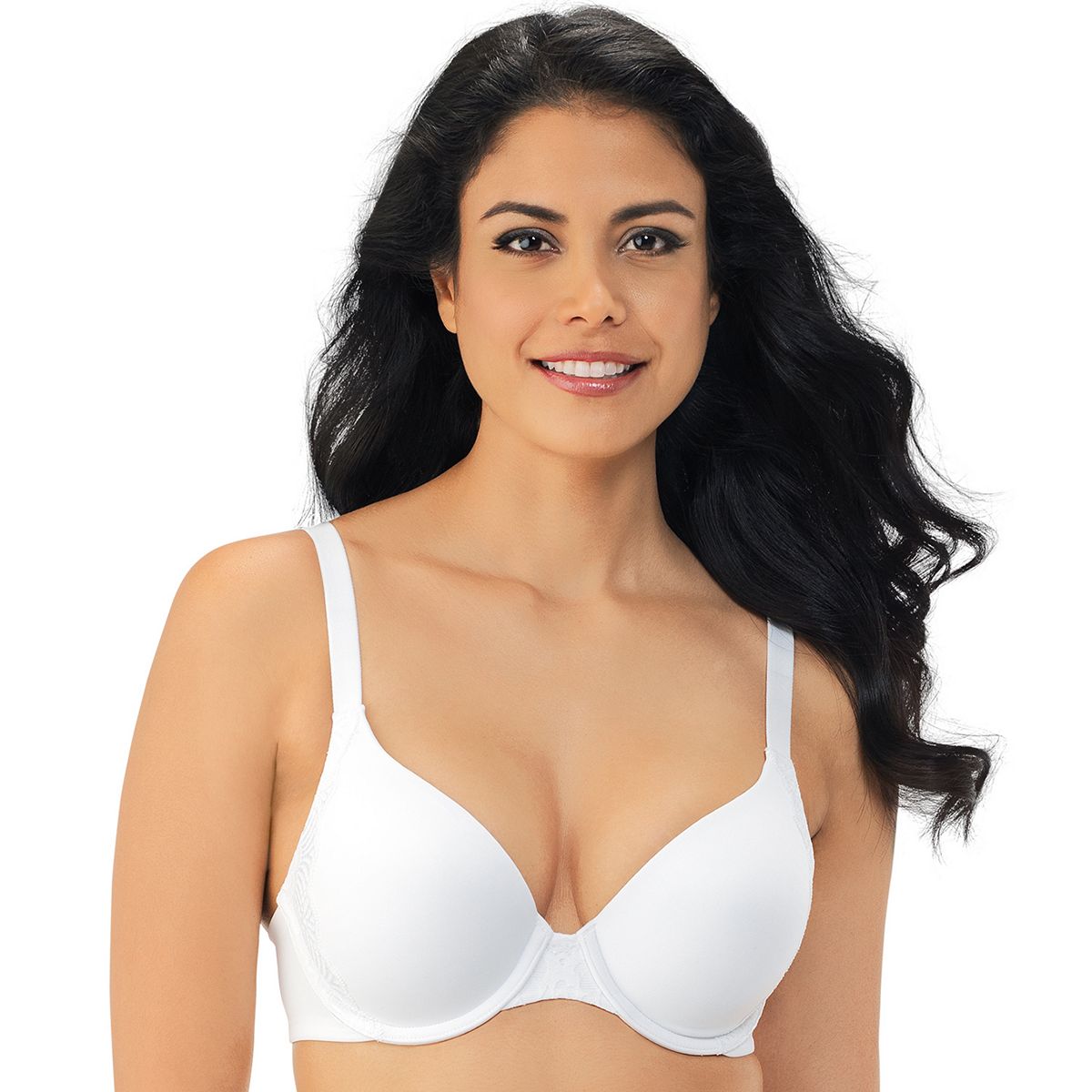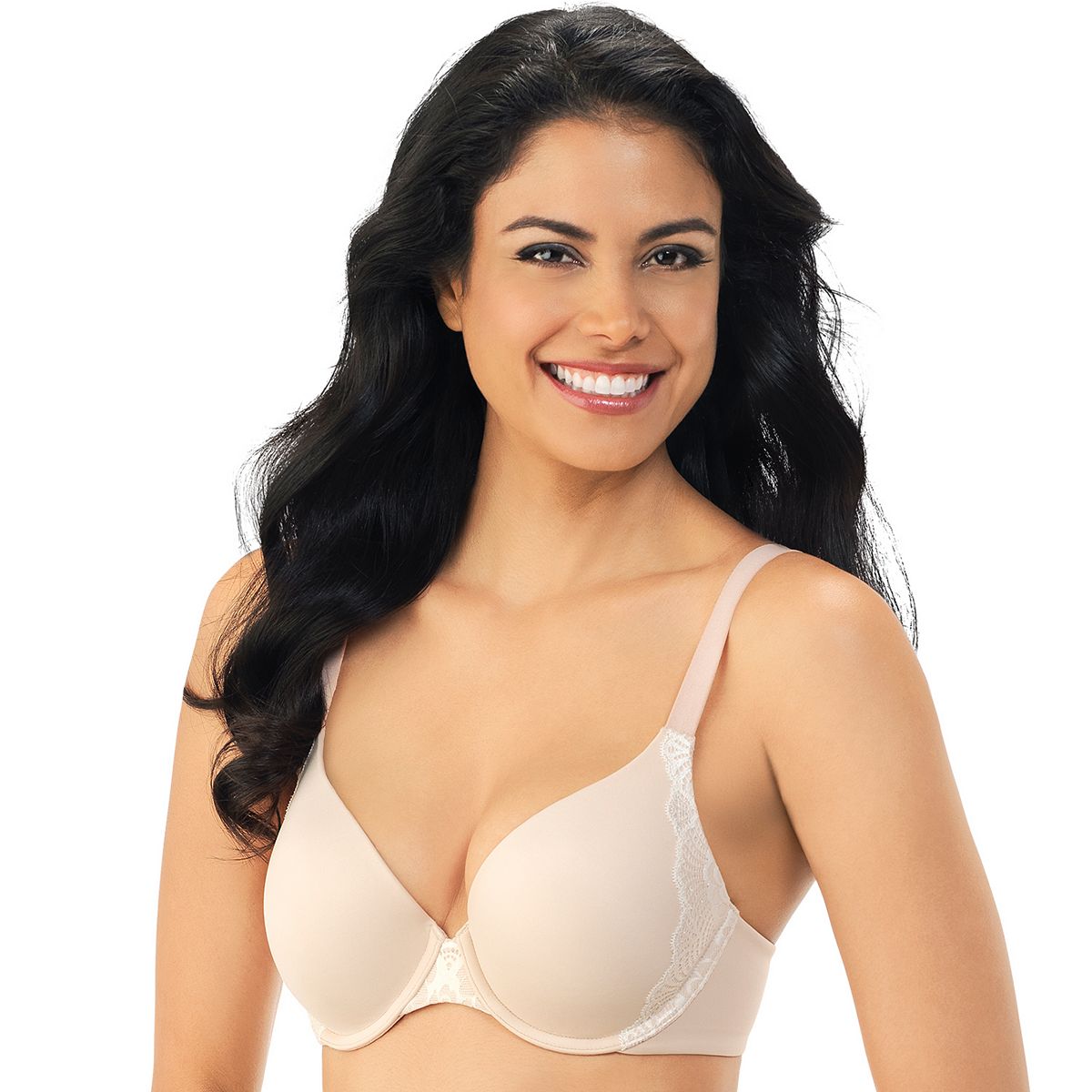 Adorned with subtle lace details on the outer cups, the Vanity Fair flattering lift underwire bra offers great support with soft, seamless cups and sturdy underwire support. This full coverage bra features pads along the underwire that lift gently for a flattering boost.
